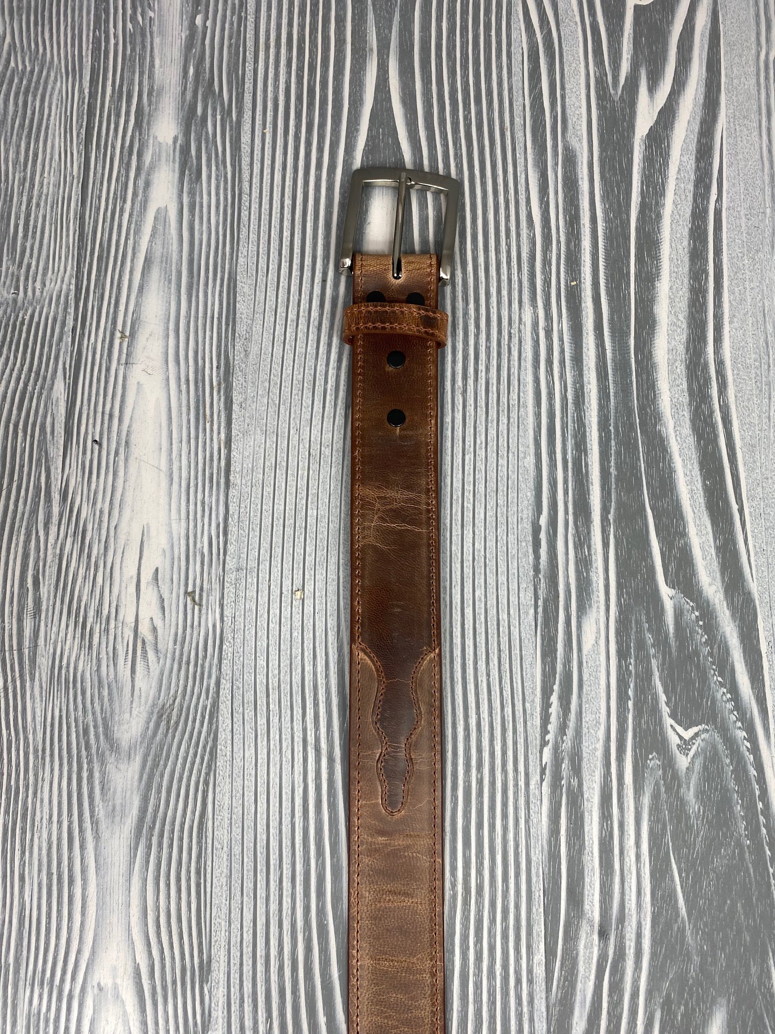 Chacon 1 1/2″ Tan? Mad Dog Goat Belt??Goat SkinSolid Brass Buckle?Keeper Included?Fits 1 1’2″ Buckle?Removable Snap Buckle?Handmade In Rociada, New Mexico??NOTE: EACH SKIN VARIES FROM BELT TO BELT