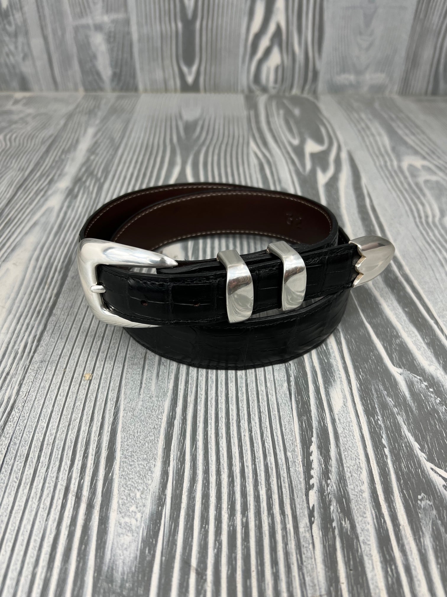 Chacon Black Crocodile 1 1/4″ Tapered to 1″ Belt??Black Crocodile Skin???Solid Brass Buckle?Keeper Included?Fits 1″ Buckle Set?Removable Snap Buckle?Handmade In Rociada, New Mexico