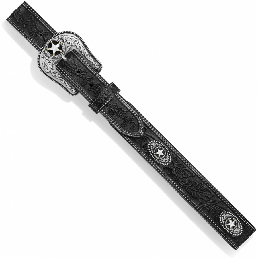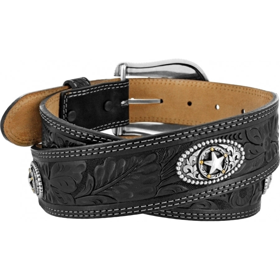 5 Star Ranch BeltThis belt with fine tooled detailing will be the star of your wardrobe.Style: #C12423Color: BlackClosure: BuckleWidth: 1 1/2″Material: Tooled/Embossed leatherHardware Finish: Silver platedFeatures: Belts run true to size