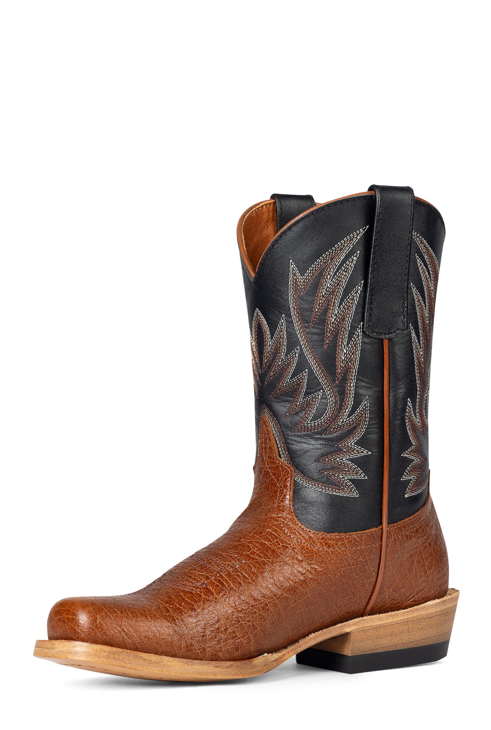 Kid’s Horse Power Honey Bull Shoulder with Black Full Grain Tops – HPK9540??Vamp:?Honey Bullfight ShoulderTop: Standard Height -?Black Full GrainToe:?HN (Narrow Square)?Heel:?CowboySole:?LeatherSizes:?Kids 9-3, Youth 4-6WHOLE SIZES ONLY?Made In Leon, Mexico