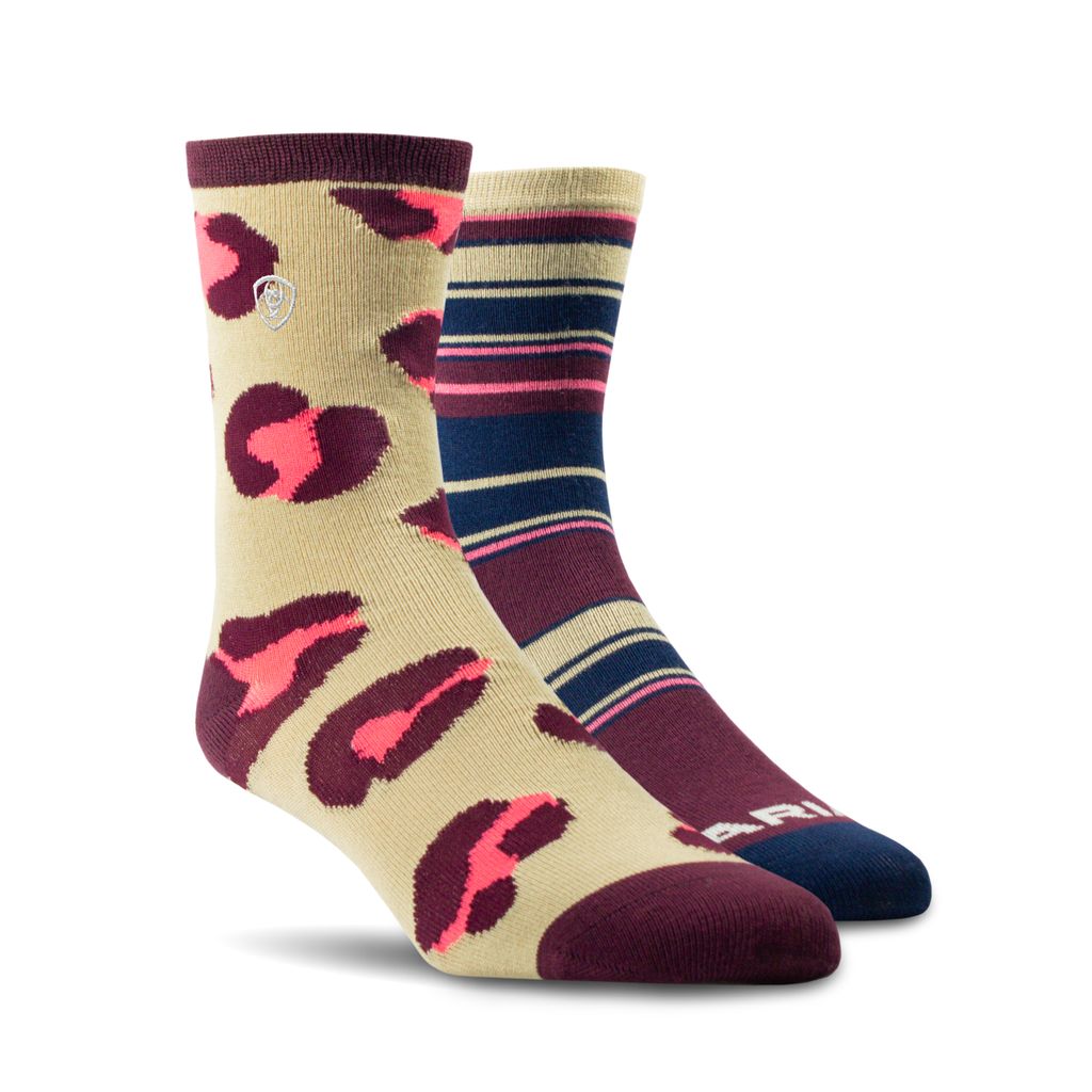 Ladies Ariat Cheetah Stripe Crew Sock 2 Pack – 10073215