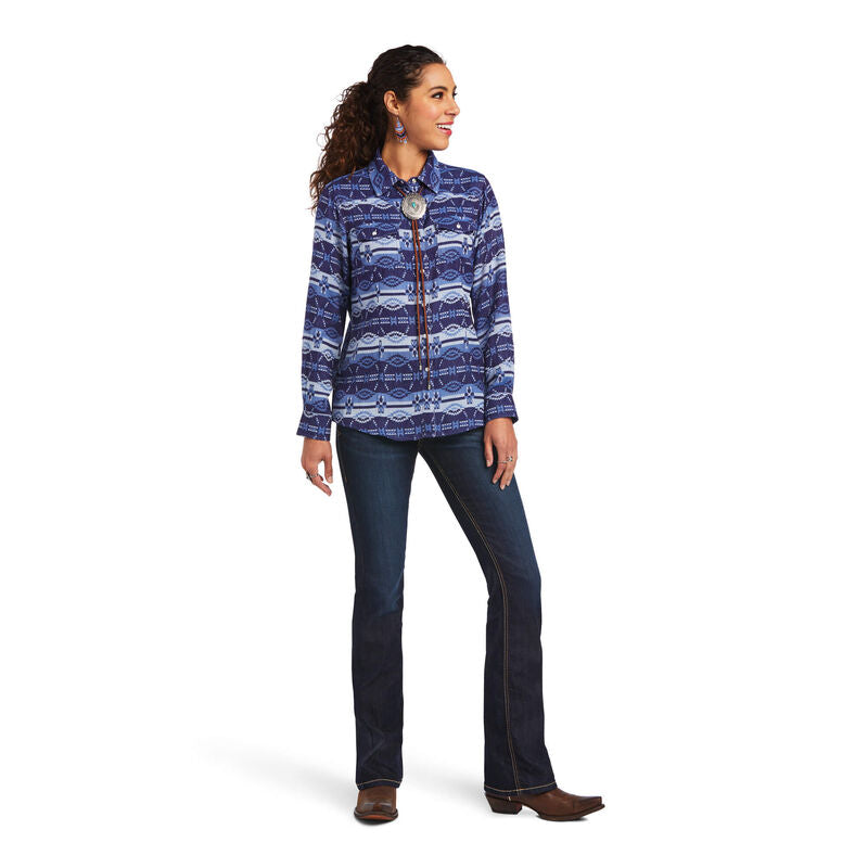 An all-over Southwestern print makes this classic Western button-up feel really special. Easy to wear and super flattering, it can do the everyday thing or make a statement.Western yoke detailSpecialty snaps100% CottonSatin jacquard