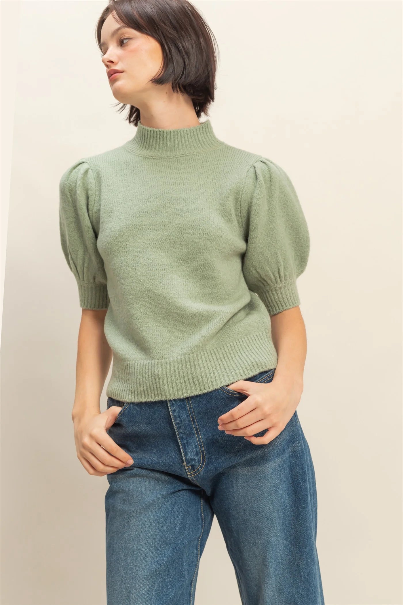 Ladies HYFVE Short-Sleeve Ribbed Sweater With Puff Sleeves – DZ25E174