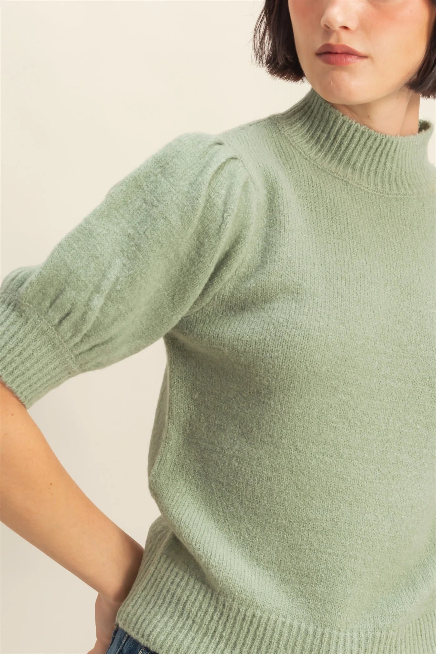 Stay Cozy And Stylish With This Short-Sleeve Knit Sweater. The Puff Sleeves And Ribbed Detailing Add A Fashionable Touch To This Classic Piece. Perfect For Layering Or Wearing On Its Own, This Sweater Is A Versatile Addition To Any Wardrobe.71% Acrylic 24% Nylon 5% Spandex