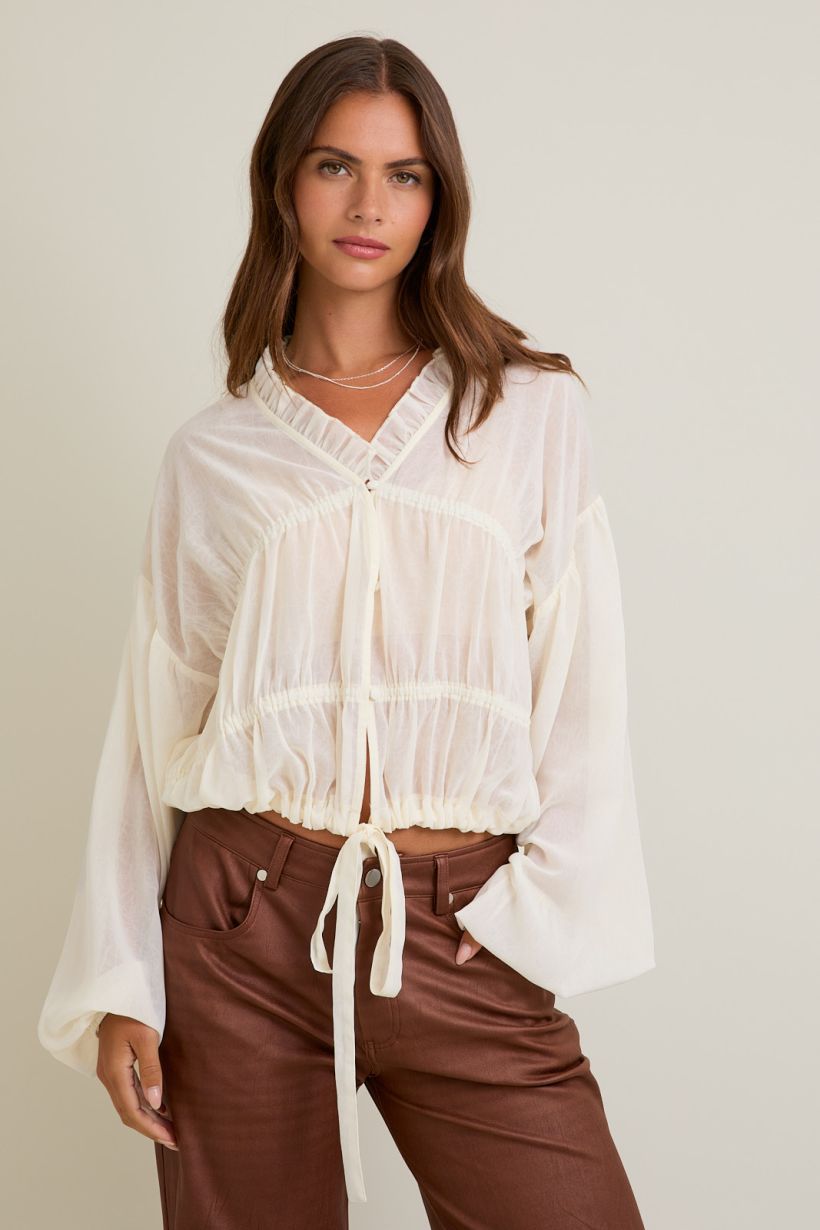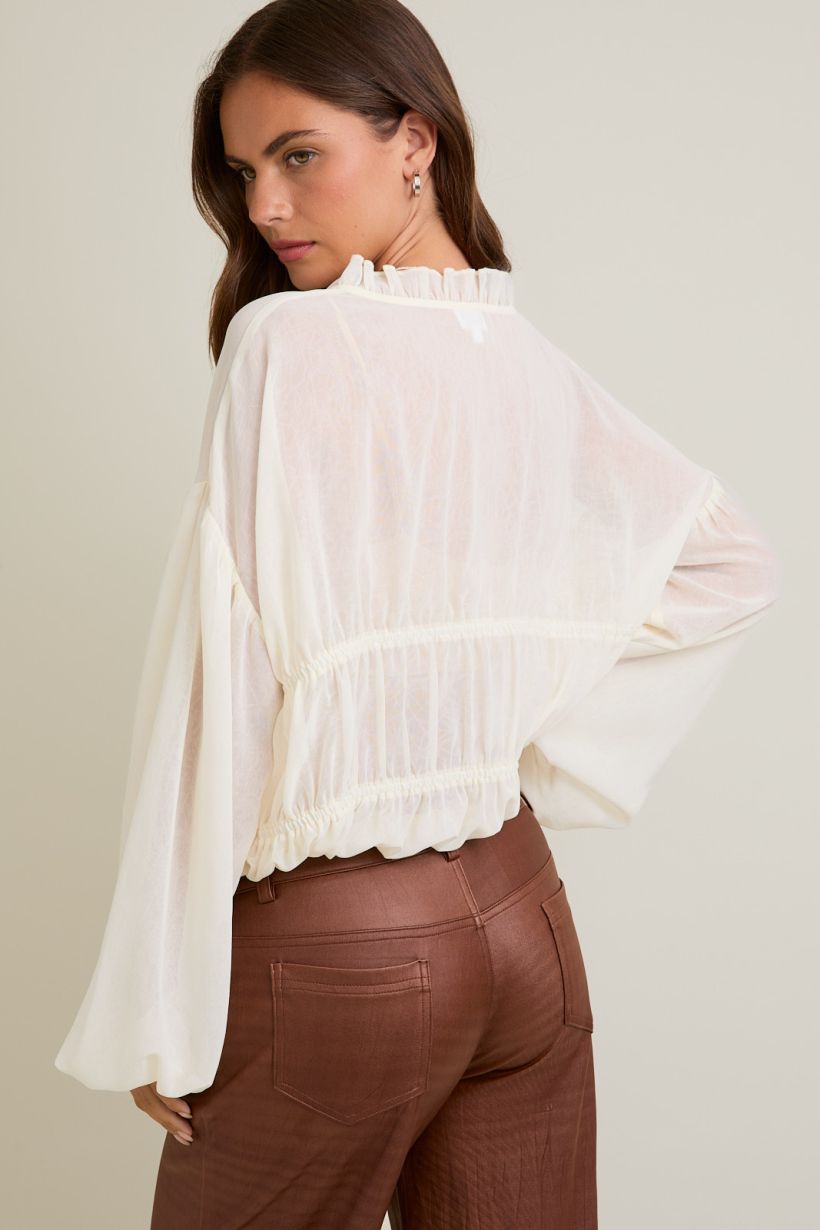 LONG SLEEVES BLOUSE TOP WITH RUFFLE DETAIL ON NECKLINE