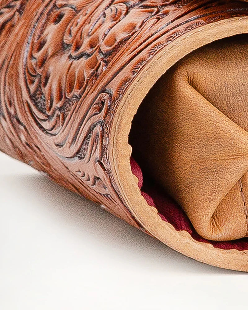 The Canyon Jewellery Case is a beautifully crafted organizer made from premium hand-tooled leather. Featuring a vibrant and colorful design, it offers a unique blend of artistry and practicality. This small Jewellery case is perfect for keeping your accessories organized in style, while the intricate hand-tooling adds a touch of elegance. Whether at home or on the go, the Canyon Jewellery Case is a functional yet stunning addition to your collection.