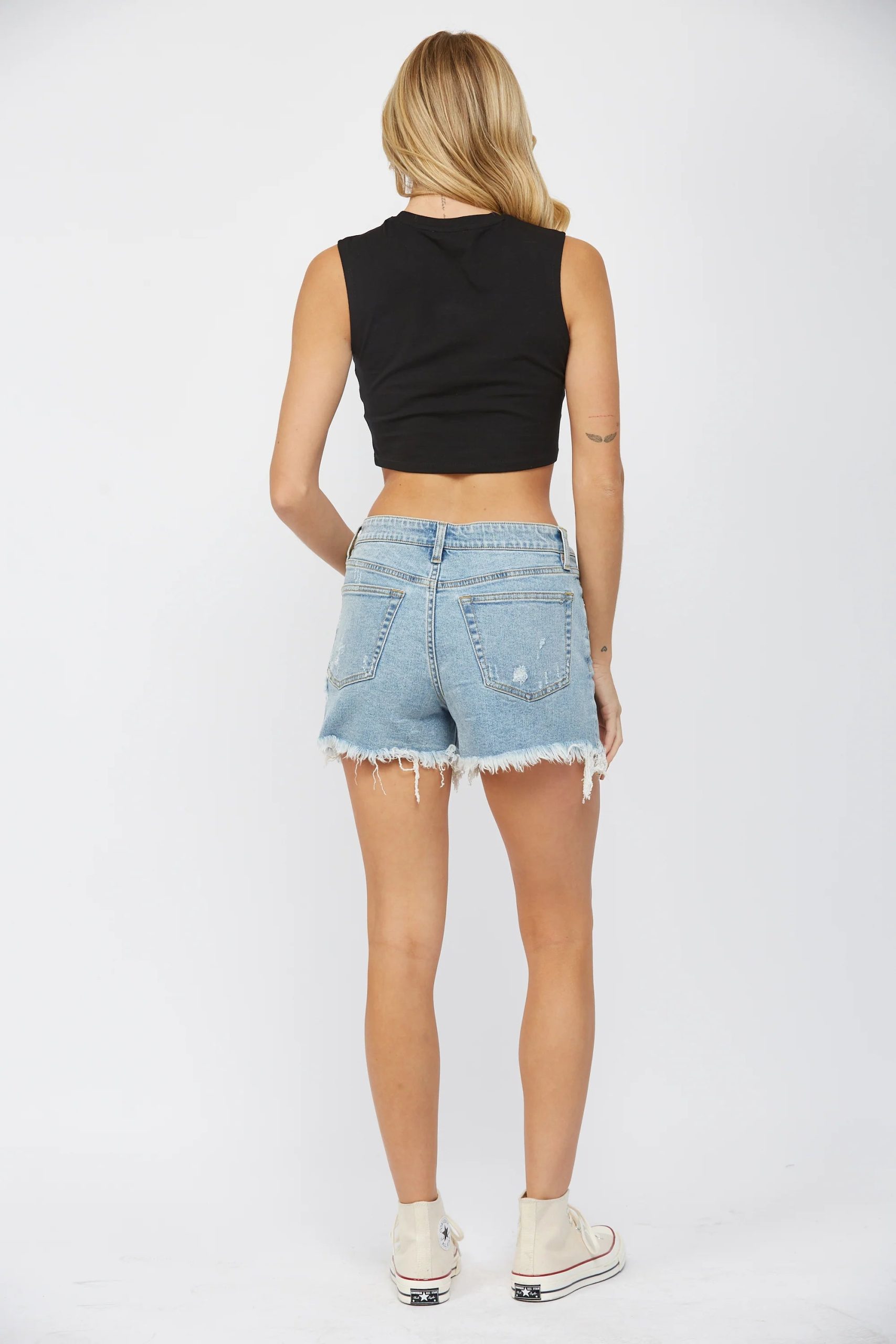 FABRIC: 94% COTTON, 5% POLYSTER, 1% SPANDEXINSEAM: 3 1/2″ FRONT RISE : 10 1/2 LEG OPENING: 23 1/2″