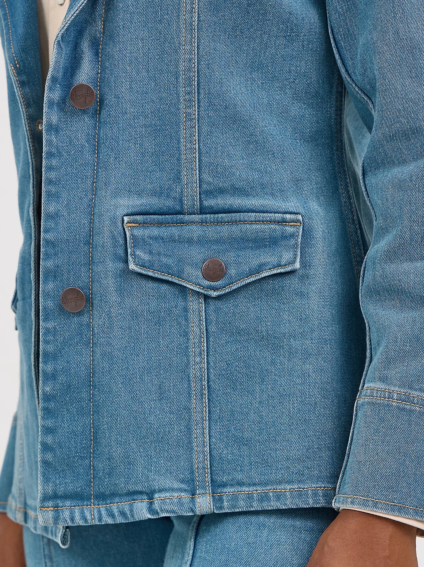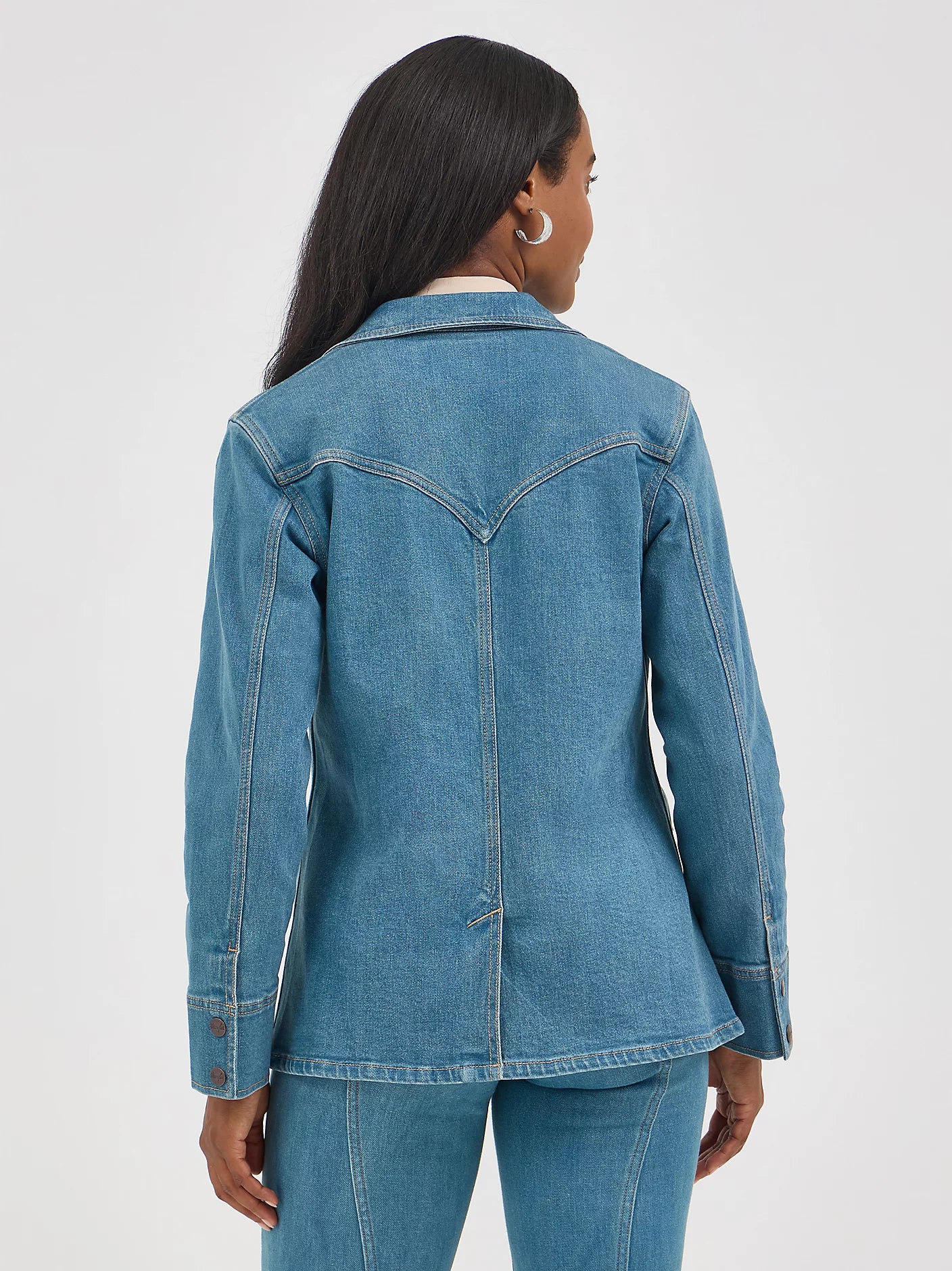 Power suiting the Western way??our Women’s Wrangler Retro? Denim Blazer delivers the cowgirl vibes you love with the chic silhouette you want. It??s woven from midweight cotton denim with just a little bit of stretch to get you to your destination in comfort. The cut: a vintage fit that’s so effortlessly versatile. It features a dramatic notched collar, a button-up front, single-point yokes, flat-felled seams from front to back, and welt flap pockets with snaps. Dressing up has never been this effortless.?Fit:?Regular?Lining:?Unlined?Sleeve Length:?Long?Front Closure:?Buttons?Collar:?Spread?Cuff:?Two Button Closure