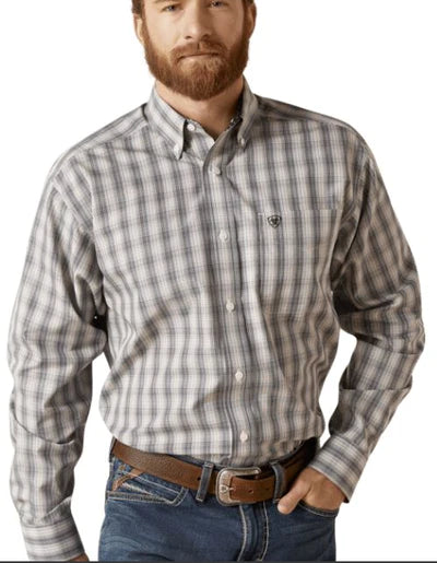 This Ariat Men’s Wrinkle Free Vahn Shirt offers a professional style without the worries of wrinkles. It is crafted with 100% cotton for a comfortable feel and features a contrast collar band and cuff for an extra touch of style. The wrinkle free finish makes sure you look great all day long.Premium poplin or yarn dye w/ wrinkle free finishContrast collar band and cuff100% cotton