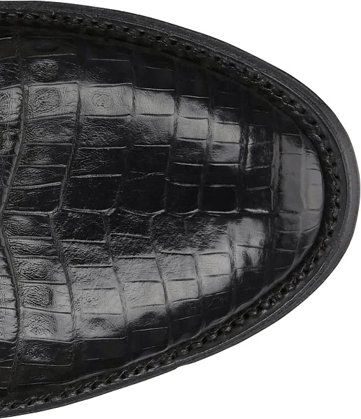 Men’s Tony Lama Tremaine Black Caiman Belly with 12″ Black Goat Top – DR5261??Vamp: Black Caiman Belly?Top: 12″ Black Goat?Toe: Medium Round?Cushion Comfort Insole?All Leather Lined?Leather Outsole