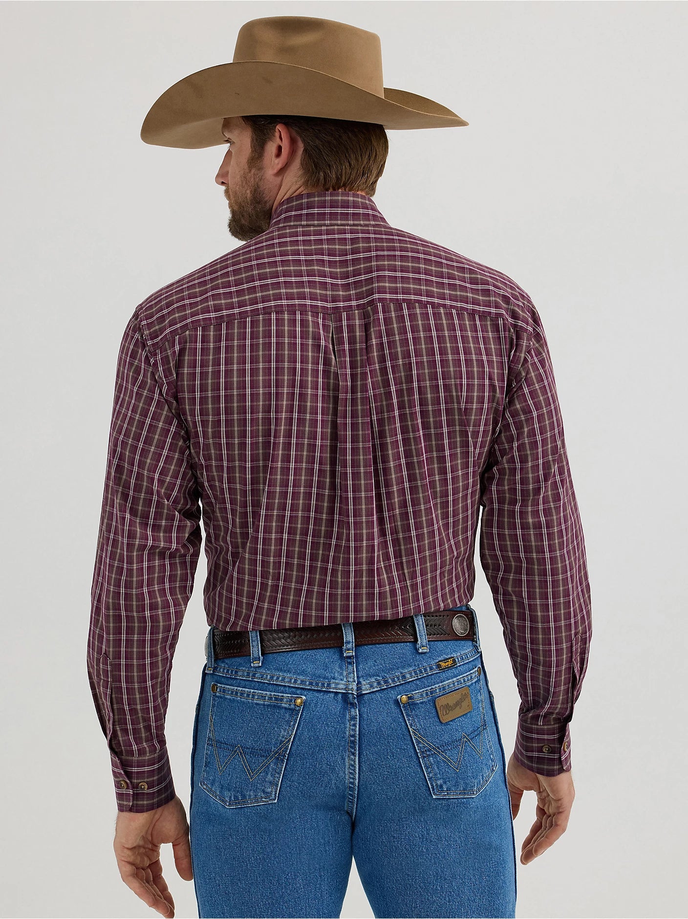 STRAIT-FORWARD STYLETake the spotlight in style wearing the George Strait? One-Pocket Button-Down Shirt. This long-sleeve button-down features a straight back yoke, one chest pocket, and adjustable cuffs. With its relaxed fit, this classic collared shirt offers plenty of room through the shoulders and torso. Plus, it comes in a wide variety of colors and patterns.?Fit:?Relaxed?Sleeve Length:?Long?Front Closure:?Buttons?Front Pockets:?One button through pocket?Collar:?Button Down?Cuff:?Two Button Adjustable?Color Name:?Wine Plaid?(112356608)??Color:?Purple?Fabric:?98% Cotton/ 2% Spandex?Type:?Cotton Blend?Pattern:?Plaid?Stretch:?Medium Stretch