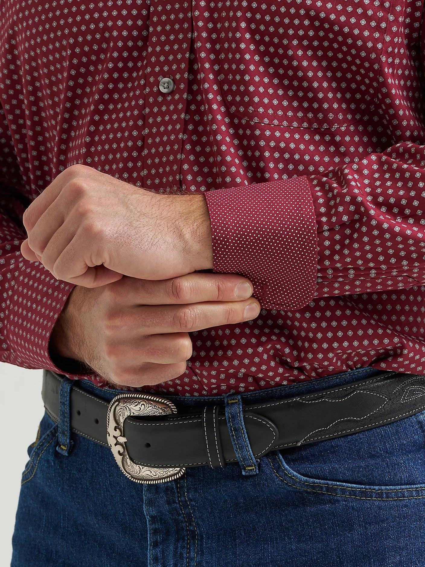 Take the spotlight in style wearing the George Strait? One-Pocket Button-Down Shirt. This long-sleeve button-down features a straight back yoke, one chest pocket, and adjustable cuffs. With its relaxed fit, this classic collared shirt offers plenty of room through the shoulders and torso. Plus, it comes in a wide variety of colors and patterns.?Fit:?Relaxed?Sleeve Length:?Long?Front Closure:?Buttons?Front Pockets:?One button through pocket?Collar:?Button Down?Cuff:?Two Button Adjustable