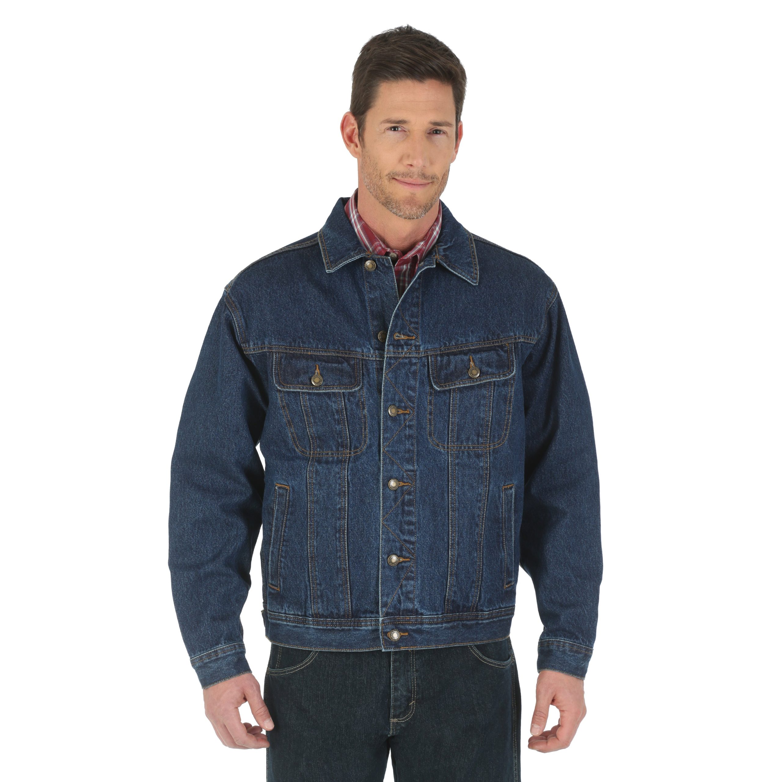 Style # RJK30ANLayering between the seasons can be tricky, but Wrangler? denim jackets provide the perfect solution for your transitional wardrobe. Made with outdoorsmen in mind, our men??s Wrangler? denim jackets come with all the practical features you need for getting things done even when the weather won??t cooperate: two front slash pockets, two front button pockets, a front button closure, an adjustable waist, and button cuffs. All Rugged Wear? unlined denim jackets for men feature a reinforced 100% cotton construction to ensure durability whether you??re at home or on the road. An everyday staple no matter the season. Plus, we offer a wide variety of sizes and washes to choose from!