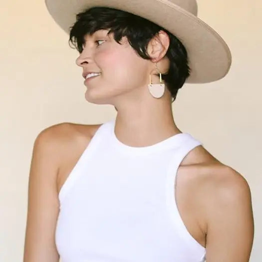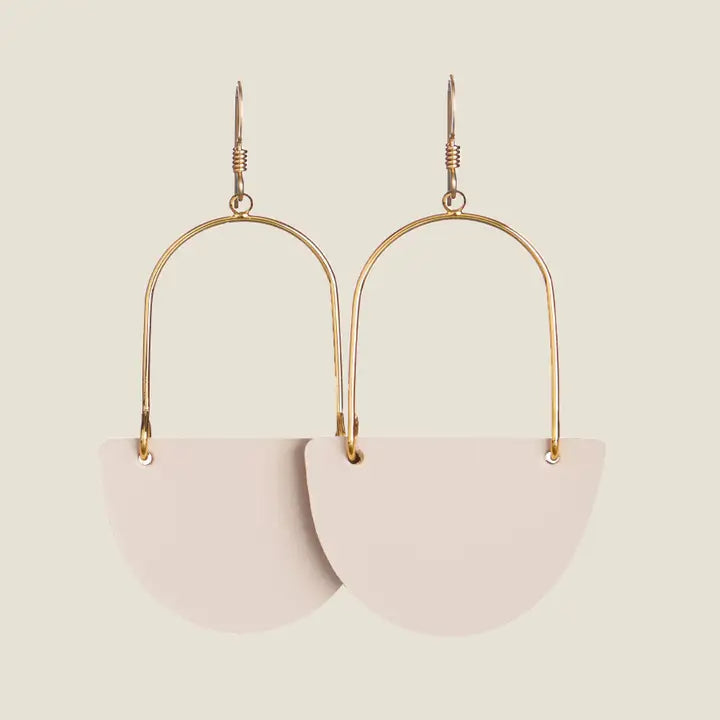 Our modern hoop design, the Isla, is now available in a fresh soft sand. This earring features a smooth leather accent with a satin finish.Made in Kansas CityGenuine LeatherNickel Free