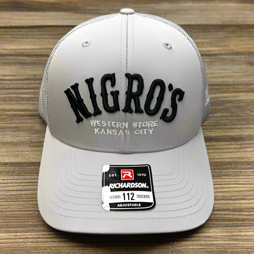 Nigro’s Richardson 112 6 Panel “Nigro’s” Black Arch Light Grey Cap – NBC 31