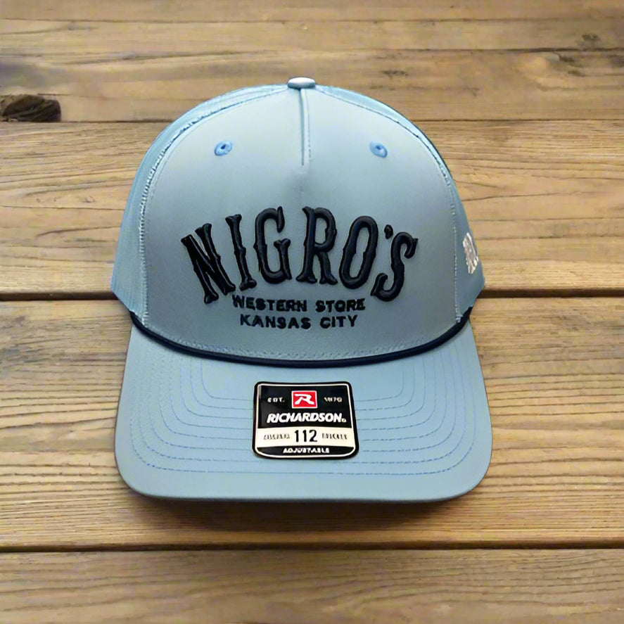 Nigro’s Richardson 112 “Nigro’s” Navy Arch Solid Columbia Blue Cap Navy Rope – NBC 5