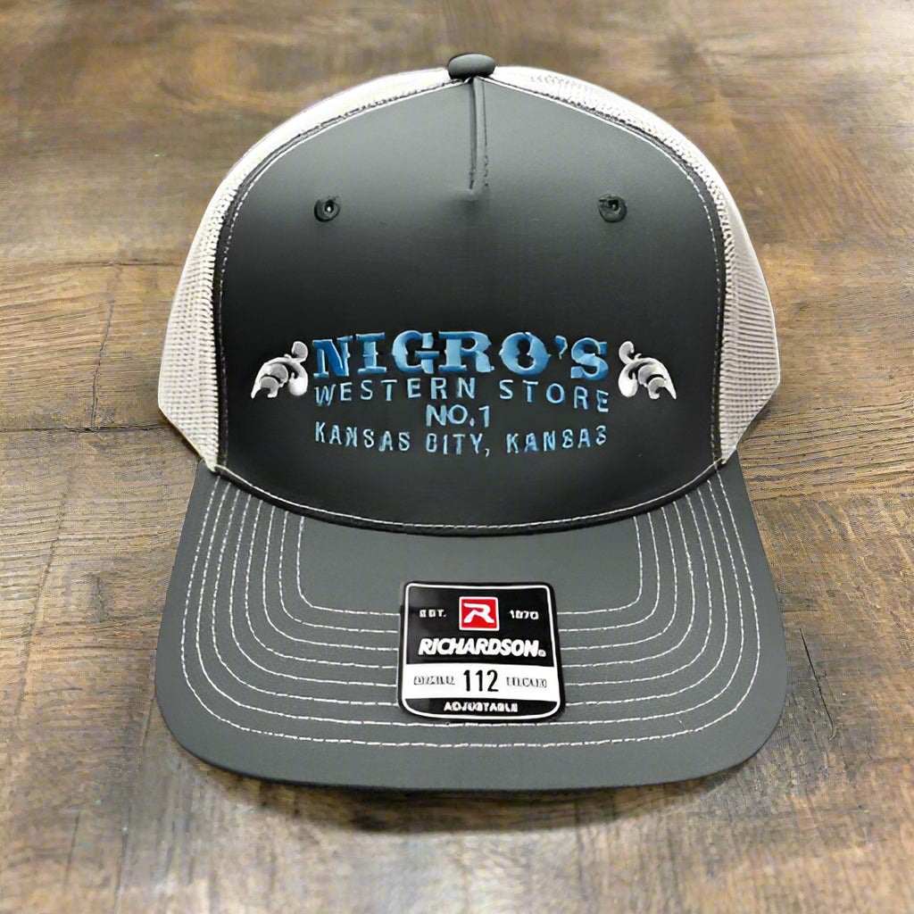 Nigro’s Richardson 112FPC Split Charcoal/Ice with Light Blue/White Scrolls Logo – NBC 18