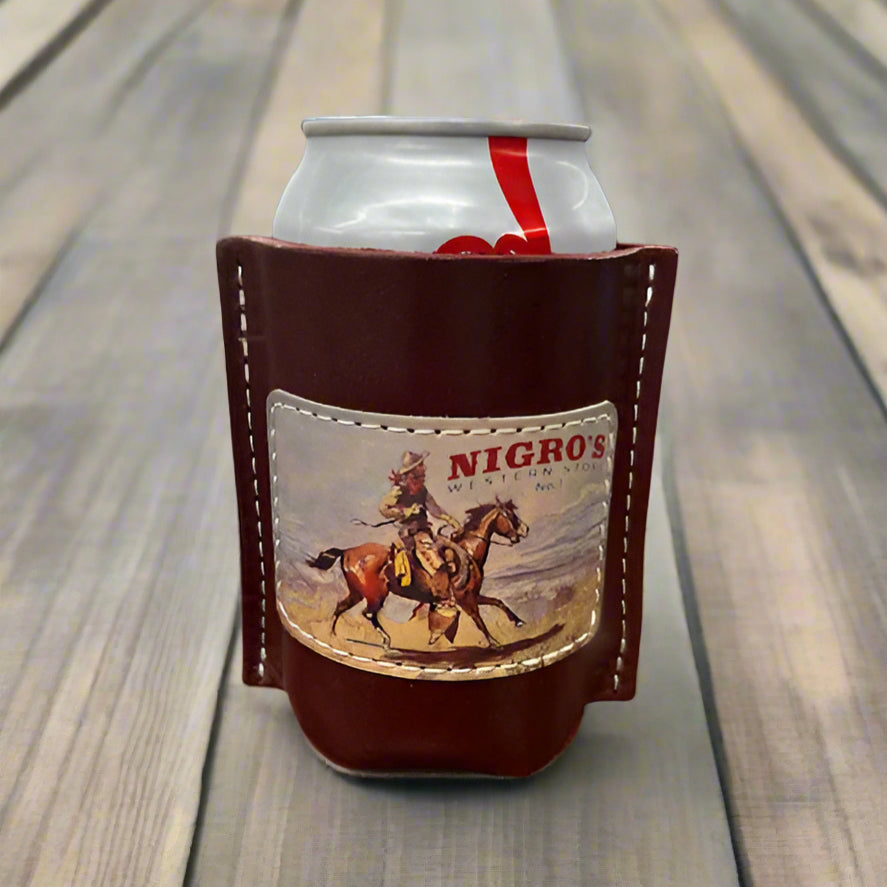 Nigro’s Western Store All Leather Koozie – Running Cowboy