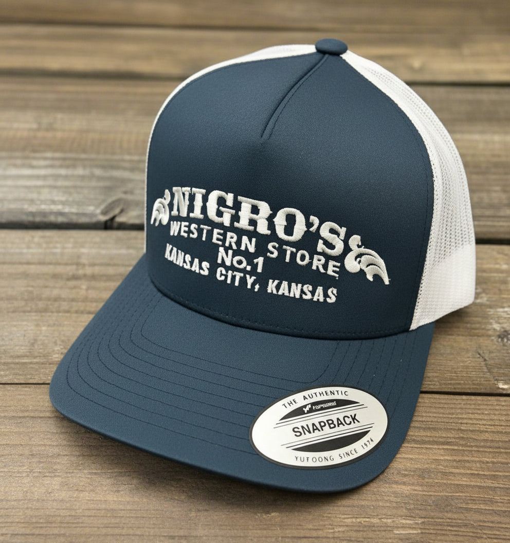 Nigro’s Yupoong Classic Blue/White White Scrolls Logo – NBC 36
