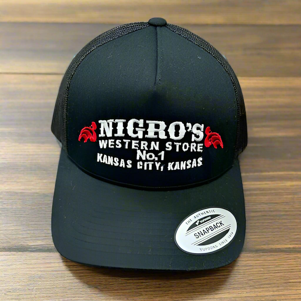 Nigro’s Yupoong Classic Solid Black Red/White Scrolls Logo – NBC 33
