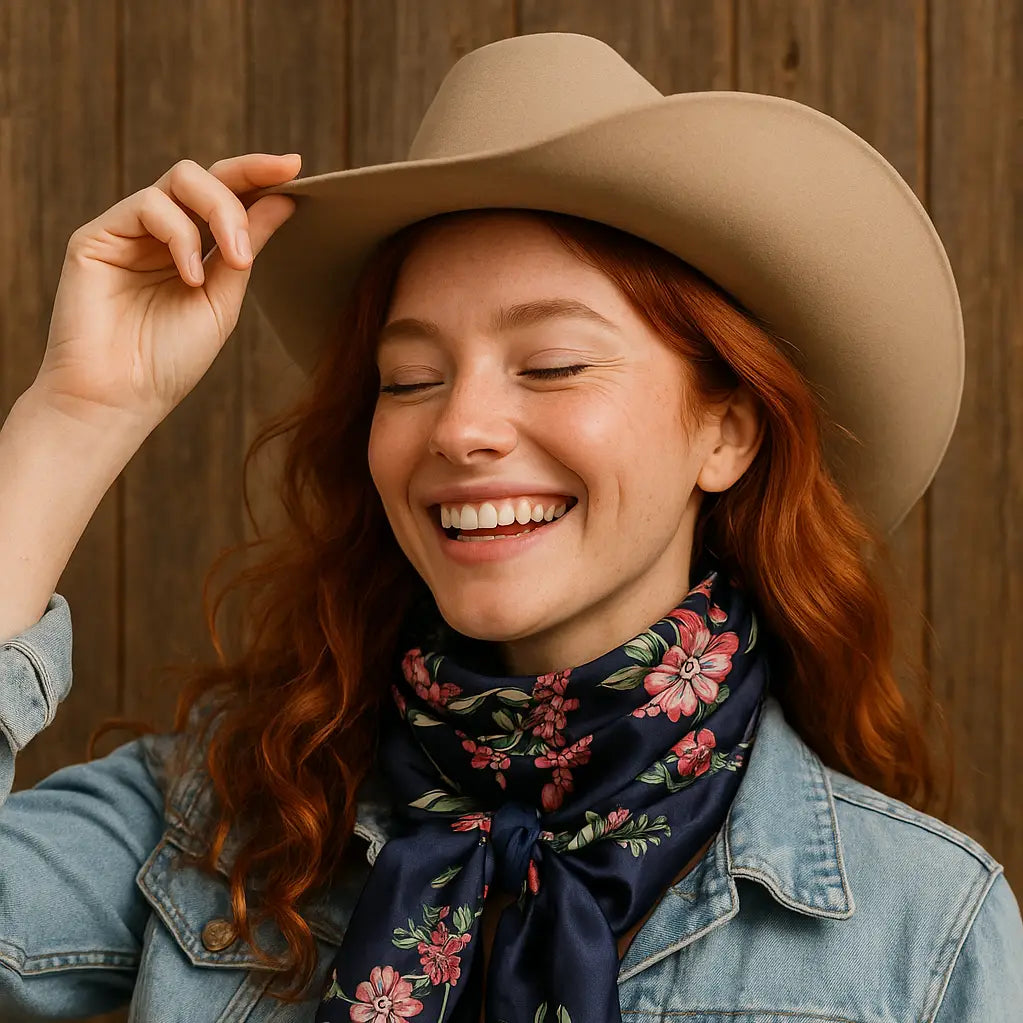 Our classic wild rag/scarf in royal blue with pink rose buds and tassels pattern. It is a square and measures 35″ x 35″. It is sure to add a bright pop of color to any outfit. Western or Crystal slides available to accent 100% machine washable polyester, silky and soft.Care Instructions: Machine washFabric: 100 % polyesterDimensions: 35 x 35 in (88.9 x 88.9 cm)