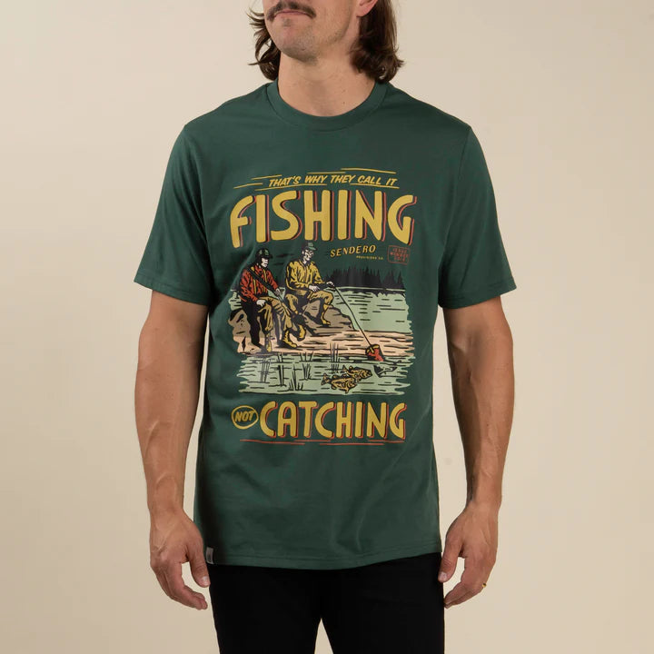 Everyone??s got those days out on the water. The ones that are so frustrating you??re ready to chuck that rod and reel as far as ya can, but that??s why ??they call it fishin?? not catchin??.??Ultra Soft 60% Organic Cotton/40% Polyester Blend?Soft Touch Screen PrintScreen Printed Inside Label?Reinforced Neck Seam Tape?Sendero Woven Labels