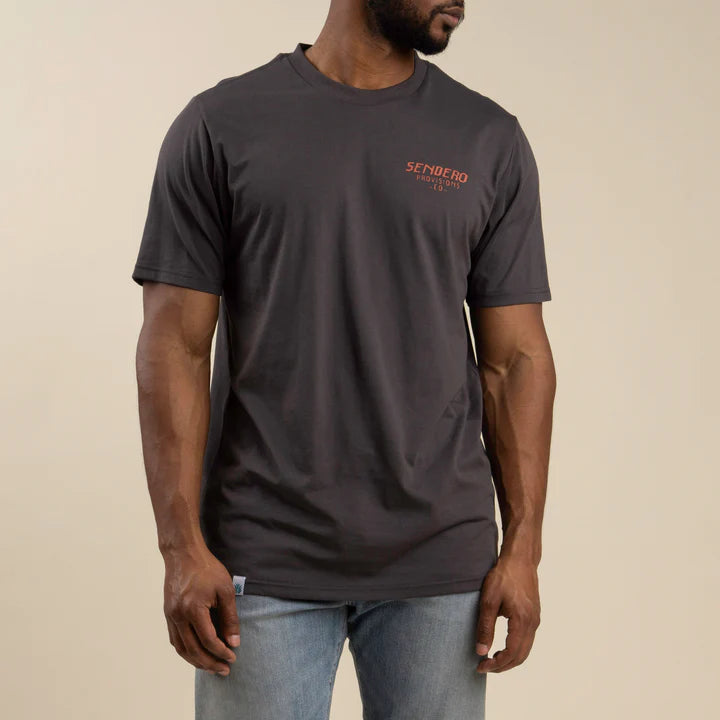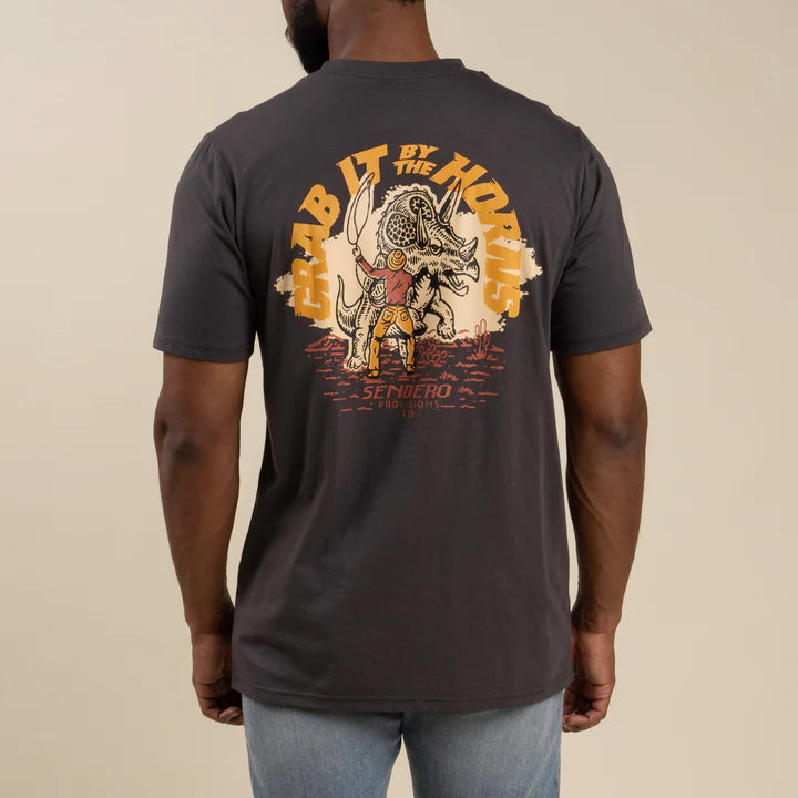Yer gonna need a whole lot more than 30 foot worth of rope to wrangle this puppy and ya definitely don??t want to end up on the wrong end of those horns.Ultra Soft 60% Organic Cotton/40% Polyester Blend?Soft Touch Screen PrintScreen Printed Inside Label?Reinforced Neck Seam Tape?Sendero Woven Labels