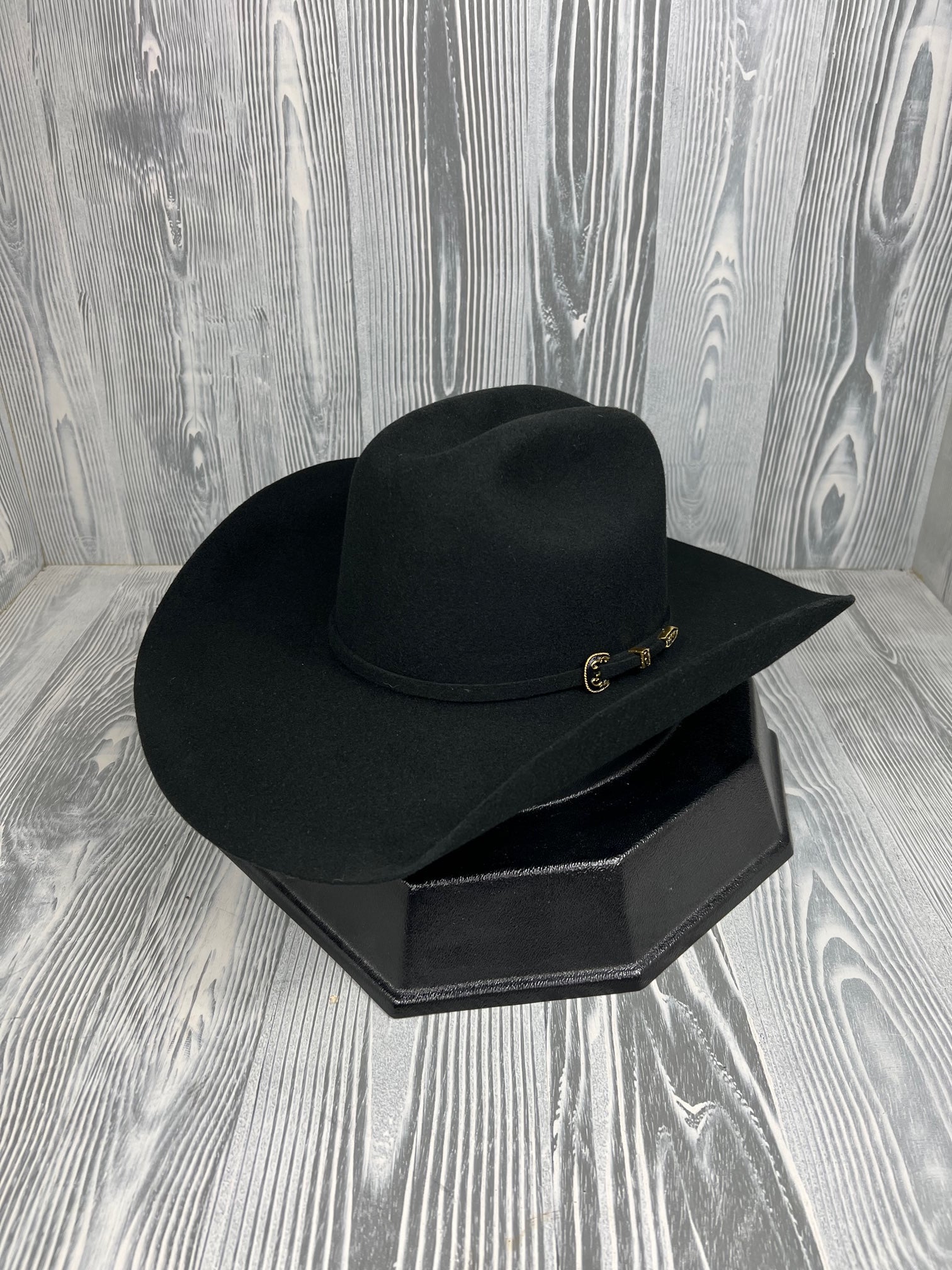 Serratelli Black Pure Wool Cowboy Hat?Black Pure Wool?Crown 4 1/4″ Cattleman?Brim 4 1/4″?Self Buckle Set?Made In USA