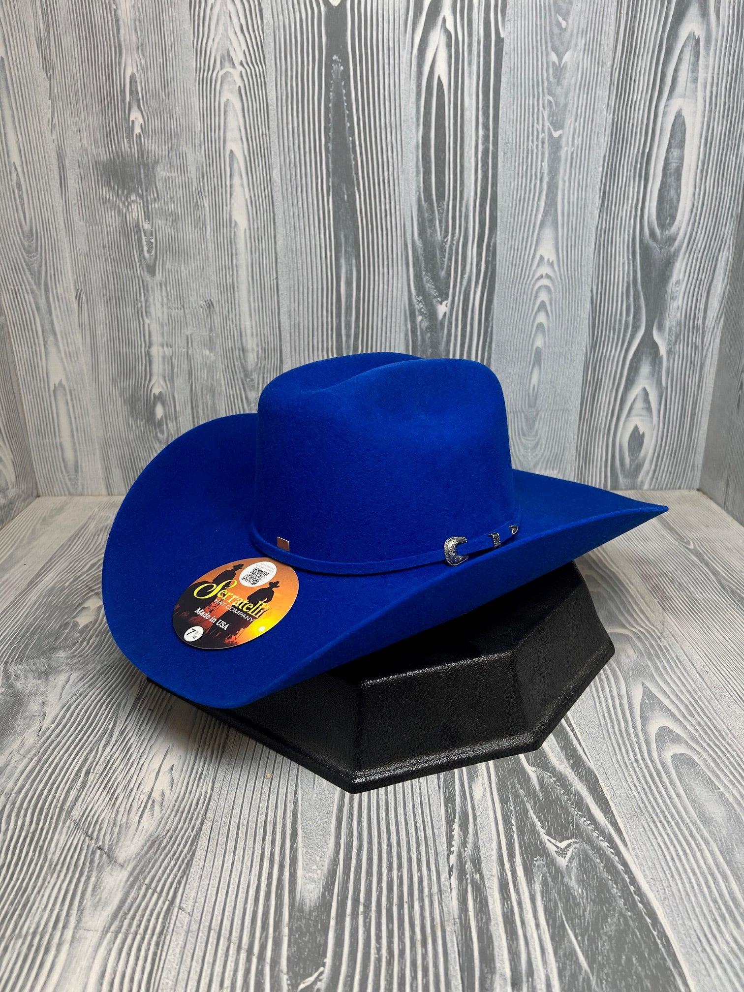 Buy it nowSerratelli Royal Blue Pure Wool Cowboy Hat??Royal Blue Pure Wool?Crown 4 1/4″ Cattleman?Brim 4 1/4″?Self-Buckle Set?Made In USA