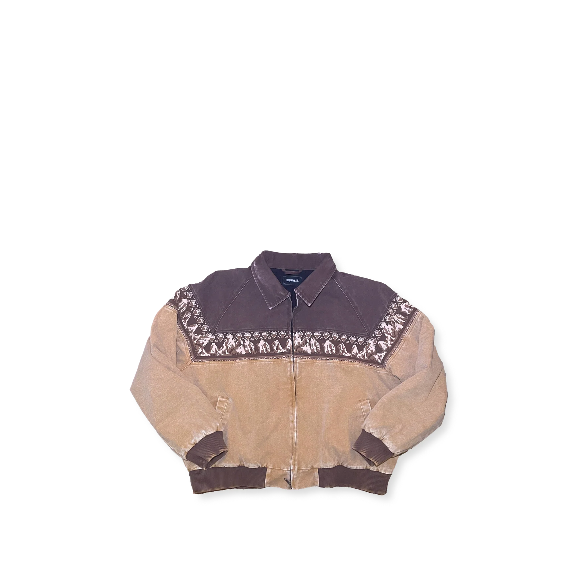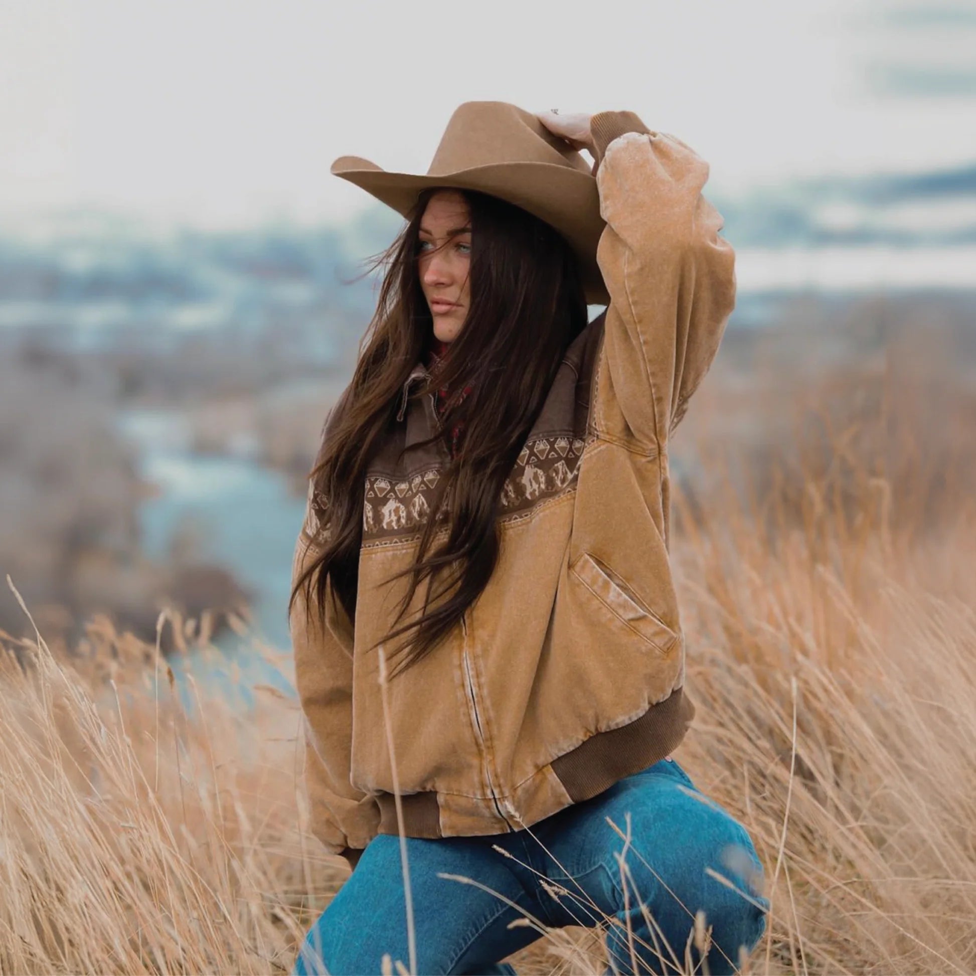 Introducing our western bomber jacket, a perfect blend of modern flair and vintage charm. Crafted with meticulous attention to detail, this jacket boasts a unique wash effect that adds a touch of retro authenticity. The jacquard detailing elevates the design, featuring intricate patterns that catch the eye and showcase superior craftsmanship. This bomber jacket not only exudes timeless style but also offers a high level of comfort, making it a versatile and must-have addition to your wardrobe. Embrace the fusion of classic aesthetics and western fashion with this exceptional piece.Material: 100% Soft-washed cotton canvas shell with 100% polyester lining