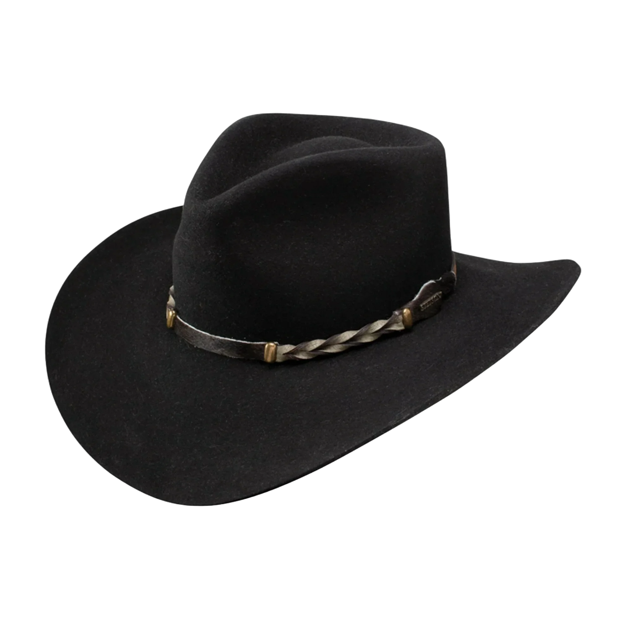 Stetson Drifter 4X Buffalo Fur Felt Hat – BlackDurable, water-resistant buffalo fur4X Quality fur blend3 1/2″ Brim4 1/4″ Crown heightPinch front?Leather Sweatband?Made In USA?Care:?Use a soft brush, starting at the left side of the hat, and brush it counterclockwise toward the back of the hat and around again. If your hat gets wet, simply shake off the excess water. If it’s a fur felt, you need to turn down the “self-conforming” leather sweatband and stand the hat on the sweatband so it can dry naturally. Never rest your hat on its brim as this could cause it to lose its shape. Store your hat upside down, on its crown, on a clean surface or in a box